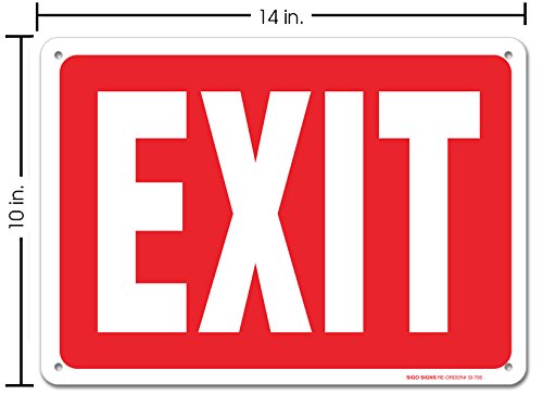 Exit Sign, Large 10x14" Aluminum, For Indoor or Outdoor Use - By SIGO SIGNS