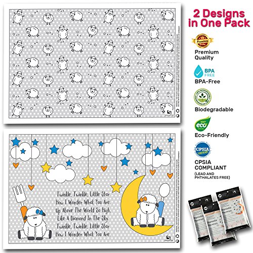 WHEN IT COMES TO KIDS, SAFETY MATTERS: Our large 12"x18" size placemats are safe against harms of Lead and Phthalates (CPSIA compliant). These BPA free placemats are handpicked to keep them perfect for those children with food allergies too! We protect our kids and our future as our placemats are BIODEGRADABLE too!