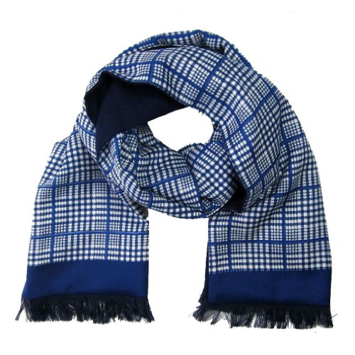 (The Perfect Necktie)/Accessories/Cold Weather Accessories/DIRECT FROM USA/Blue - White Silk Wool Scarf