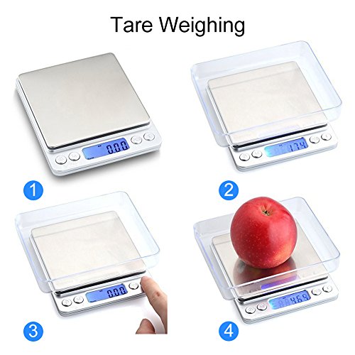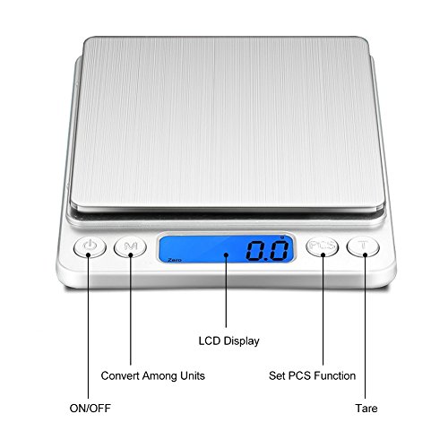 Ehomely Digital Kitchen Scale Cooking Scale and Baking Scale, Multifunction with Range From 0.0035oz (0.1g) to 4.4lbs, Stainless Steel Food Scale with LCD Display (Batteries included)