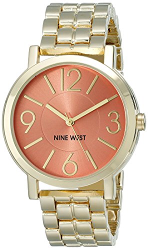 Nine West Women's NW/1694COGB Gold-Tone Bracelet Watch with Coral-Color Dial