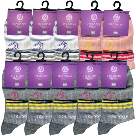 BYC 한국제 여성용 중목[단목] 양말로 10켤레 케이스 포장 상품 입니다