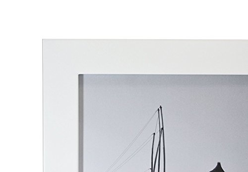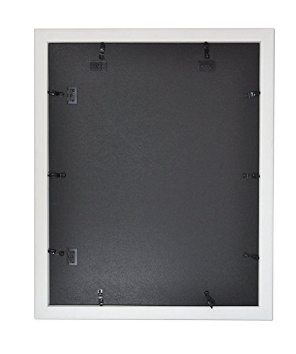 New White Photo frame outside size is 18" x 22". The frame is for pictures 16" x 20". Frame border is 1.5 inches wide. The frame comes with real glass, backboard, and hangers. The back have 4 hangers, 2 for vertical and 2 for horizontal.Feature