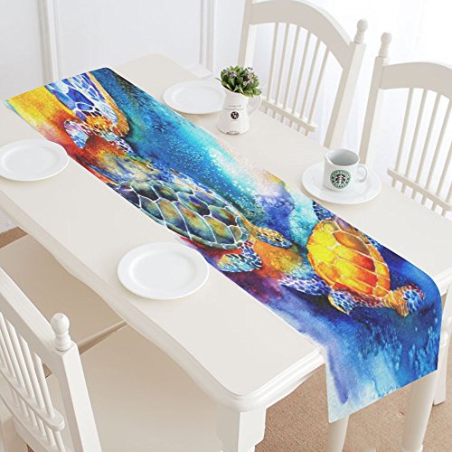 -. Title : InterestP.R.Int Watercolor Sea Turtle Cotton Table Runner Placemat 16 x 72 inch, Underwater World Ocean Creature Table Linen Cloth for Office Kitchen Dining Wedding Party Home Decor