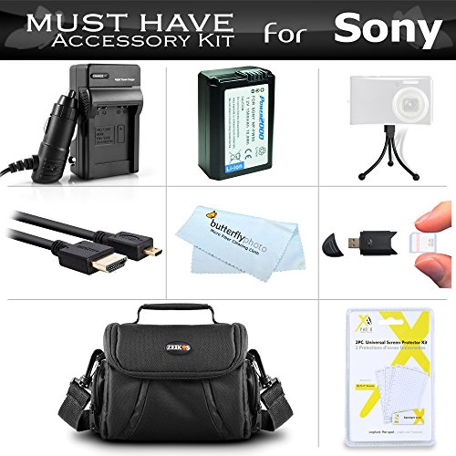 Must Have Accessory Kit For Sony Alpha a6000, a6300, a6500, a5100, a5000, a7 Interchangeable Lens DSLR Camera Includes Replacement NP-FW50 Battery + Ac/Dc Charger + Micro HDMI Cable + Case + More
