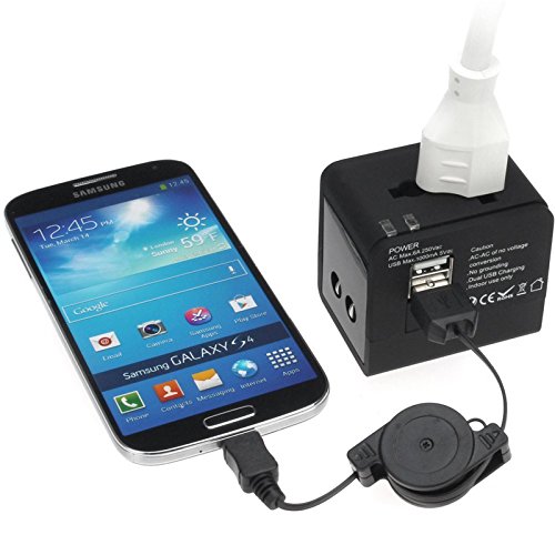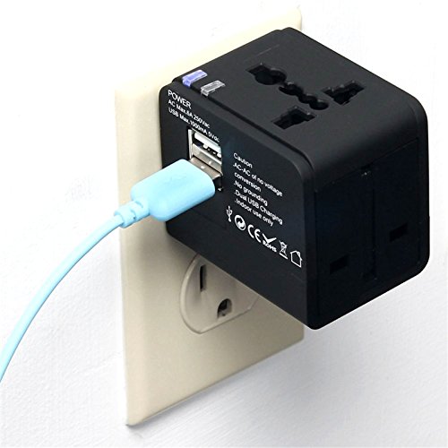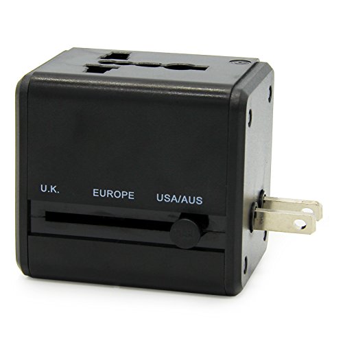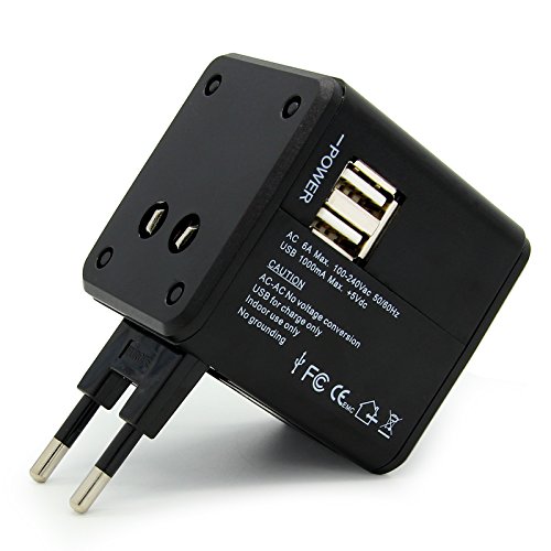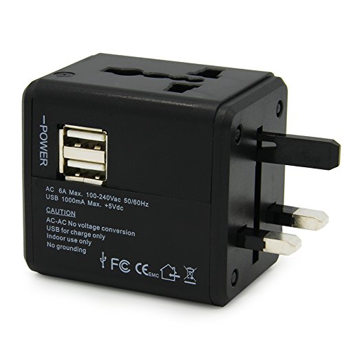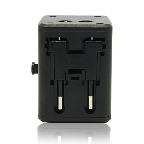 Allytech(TM) US UK EU AU Universal World Wide All-in-one Safety Travel Charger Wall Charger Adapter Plug Built-in Dual USB Ports (Black)
