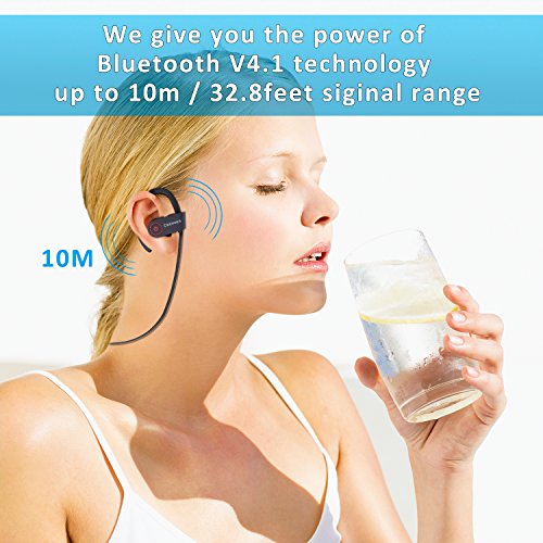 -. Feature : 【IPX7 WATERPROOF HEADPHONES】 Bluetooth headphones over ear chip with internal nano-coating treatment and waterproof headphones with water resistant shell offer a double layer of water resistant protection. Wireless earbuds for cell phones can run in the rain or shower or swimming or sweat-proof in the gym to enjoy the music or phone communication . / 【BATTERY PERFORMANCE】Bluetooth earbuds microphone it provides up to 6-8 hours of talking time and music time and the standby time can last to 220 hours. No worry about low power when you are outside. Workout headphones will automatically shut down after losing connection. / 【ADVANCED TECHNOLOGY】Bluetooth headphones with microphone Up to 33ft Bluetooth range in the open space and 10ft in the obstacles space. Headphones wireless Can be connected with two devices Simultaneously. bluetooth headsets give you the power of Bluetooth V4.1 technology for seamless syncing to your favorite wireless devices, including iPhone, iPad, Android cell Phones, Windows Phones. / 【NOISE ISOLATING】 Bluetooth headphones sport with Noise Cancellation 6.0 reduces outside noises and enables clearer sound from microphone. You can get high quality, hands-free phone conversation even on the street or inside shopping mall. have no external noise or other interference. / 【2 Years Warrenty】GET 100% SATISFACTION or GET a REFUND! 2 year warranty- your purchase is totally risk-free!【SUPER SOFT SECURITY HOOKS】bluetooth headphones headset With Ergonomic design and silicone ear hooks without falling out, Magicbuds Bluetooth Headphones headset are secure behind your ears and rest comfortably in the ear canal.bluetooth headphones for cell phones is great for Gym, Running, Jogging, Hiking, Cycling, and impact Sports.