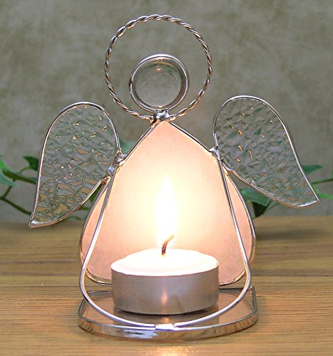 Grandma Candle Holder -- Beautiful Glass Angel Tealight Candle Holder with Flowers and "Grandma's Are Angels" Printed on the Front -- Makes a Great Gift for Grandma, Grand-to-be, Great Grandma or Mother-in-law -- Stands 4"h
