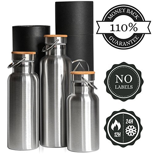 We deliberately made this Insulated Water Bottle Vacuum only from stainless steel (SS 304 & SS 201), raw bamboo wood and food grade BPA free quality silicone. We chose to make our bottles out of Premium Grade 304 Stainless Steel because of it's a durable material with excellent corrosion resistance that doesn't leach toxins into your water or affect the way the water tastes. SS 201 has high resistance to corrosion and contains nitrogen that provides to our bottles higher yield strength and toughness than SS 304 which makes it ideal for outer layer.