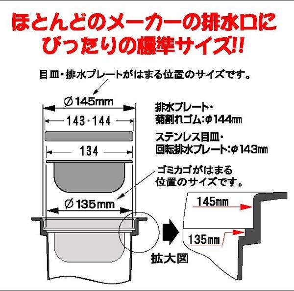 ほとんどのメーカーの排水口にピッタリな標準サイズの排水プレートです。