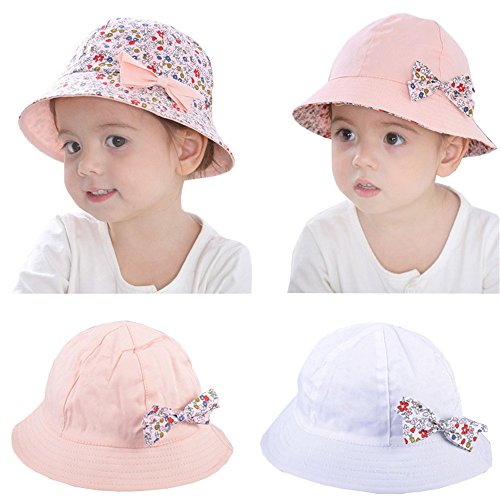 Product Description Kangkang@ New Flower Print Cotton Baby Summer Hat Kids Girls Floral Bowknot Cap Sun Bucket Hats Double Sided Can Wear gorros infantiles 0