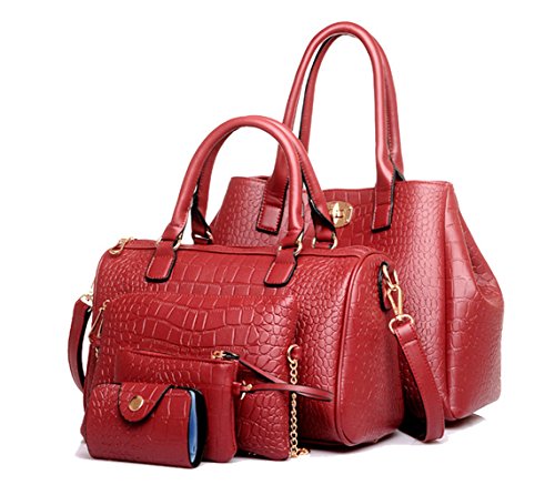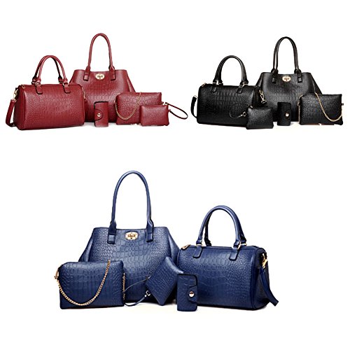 Tibes Fashion PU Leather Handbag Tote Shoulder Bag Purse Card Holder 5pcs Set Purse for Women