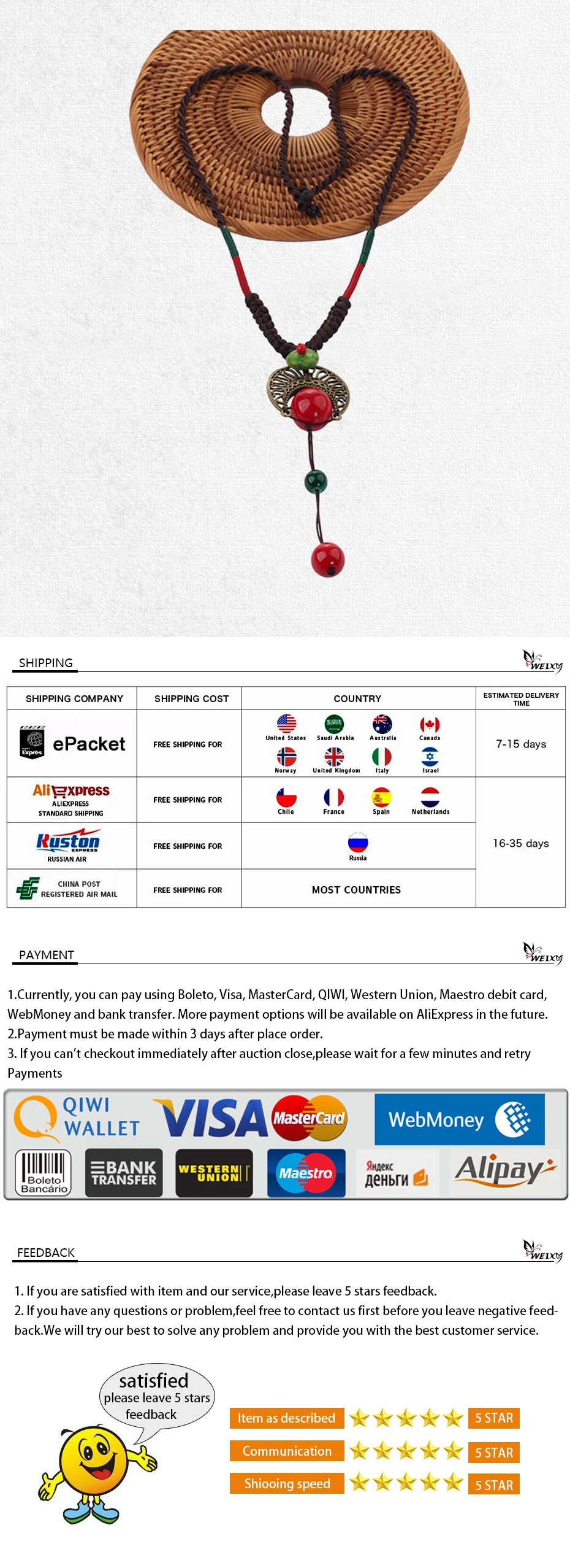 Pendant Size:4*7.5cm