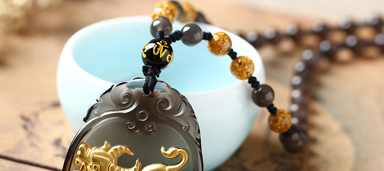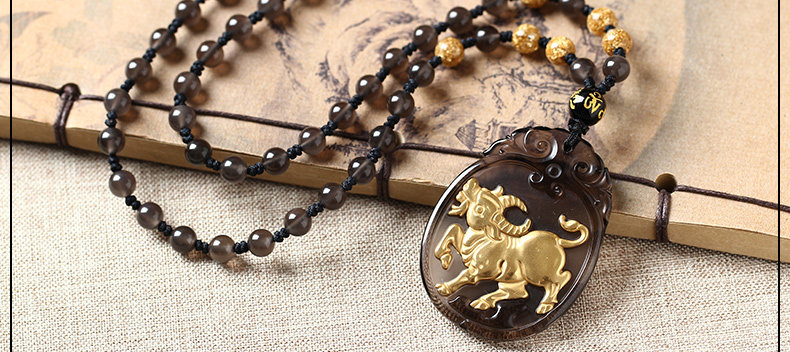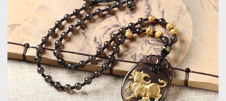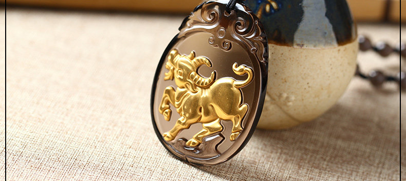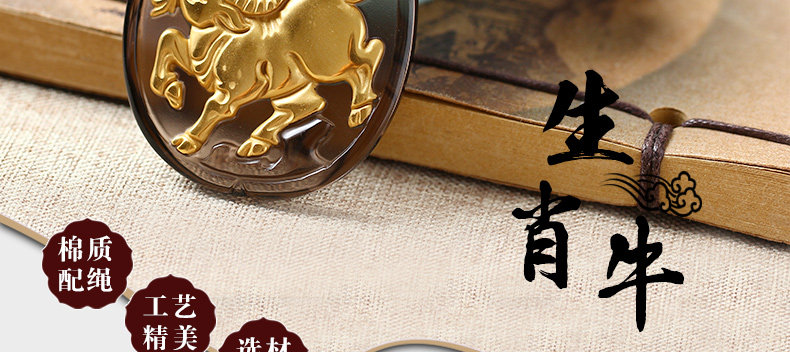 开光天然冰种镀金黑曜石属蛇灵牛保岁玉青牛传瑞吊坠男女款平安