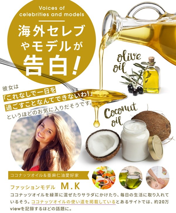 コ コナッツオイル、亜麻仁油、エゴマ油、アボカド油、アーモンド油、マカダミアナッツオイル、黒ウコン末、オリーブ油、植物発酵エキス末(小麦・キウイフ
