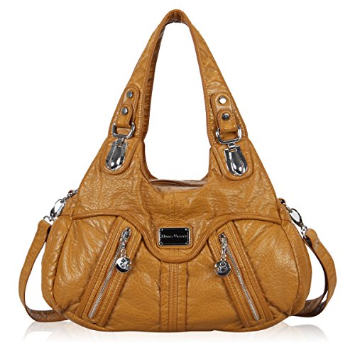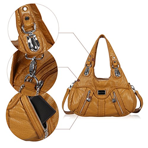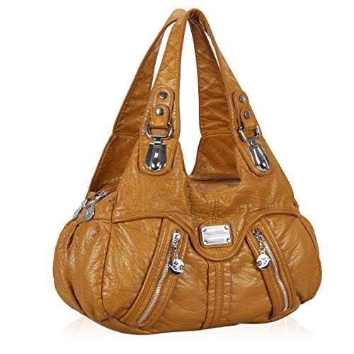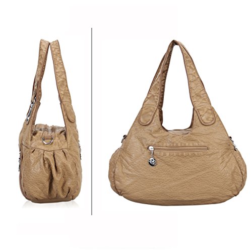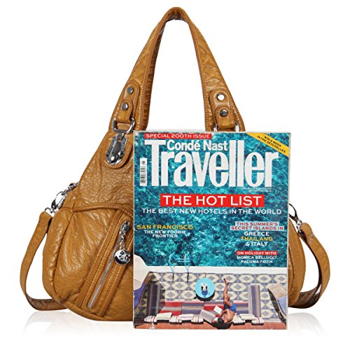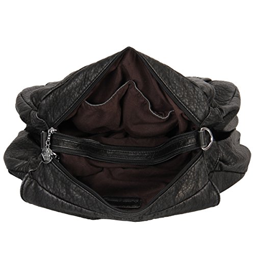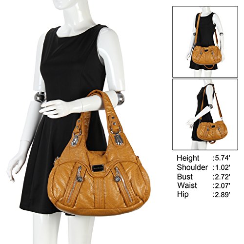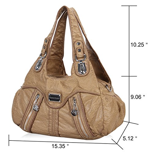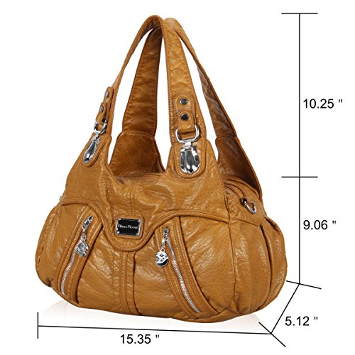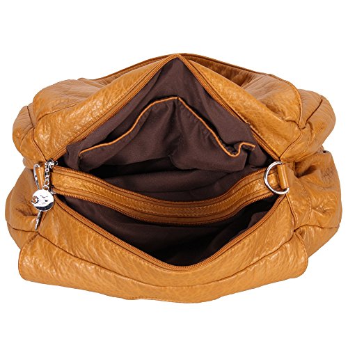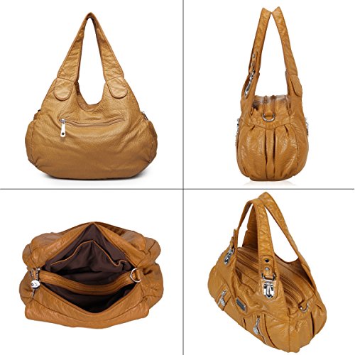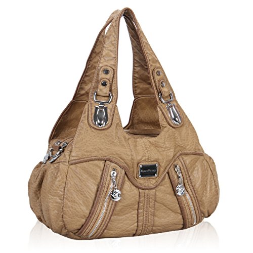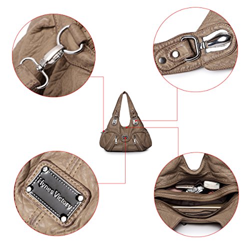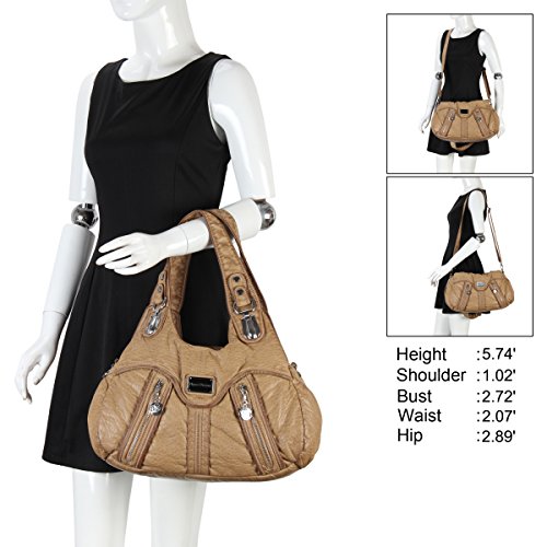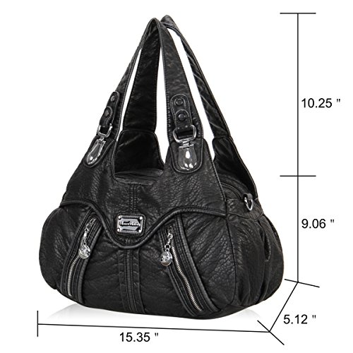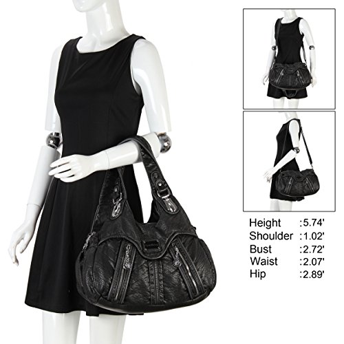 [Description] Washed Hobo Purse: Zipper closure & washed faux leather with fabric lining Dimension (15.3 x 5.1 x 9.1 inches)_ Handles (10.1 inches)_ shoulder strap drop 22.5 inches Well-organized Interior: The hobo handbag features 2 main zip compartments_ 2 front zip pockets_ 1 back zip pocket_ and silver-tone hardware_ easily to store your essentials Backside zipper pocket available for valued items_ e.g. keys_ phones_ money_ etc. Carry it by its refined top handles or attach the adjustable shoulder strap for hands-free style
