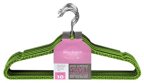 The Macbeth Collection Chain Link Printed Velvet Hanger, 10-Pack, Green