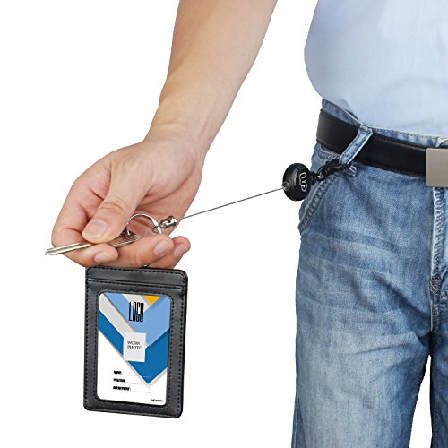 Wisdompro Value Set includes: 1 x Retractable Reel, and 1 x Vertical PU Leather ID Badge Holder