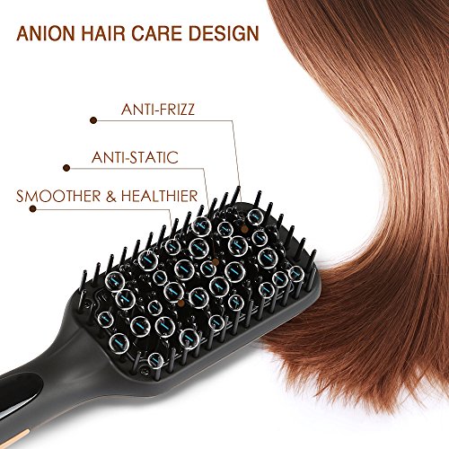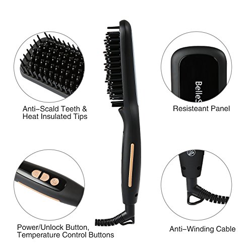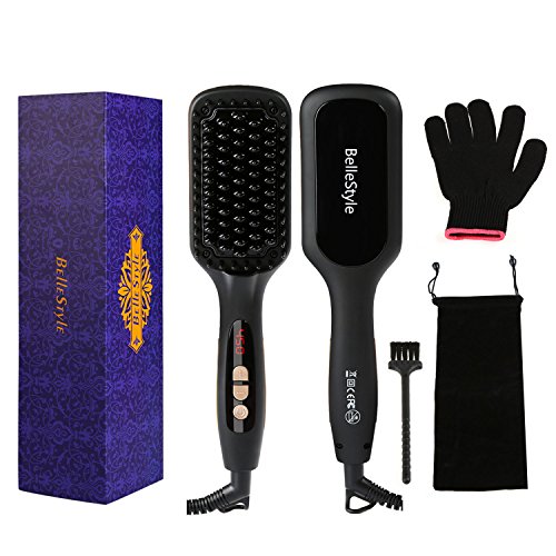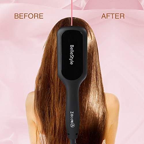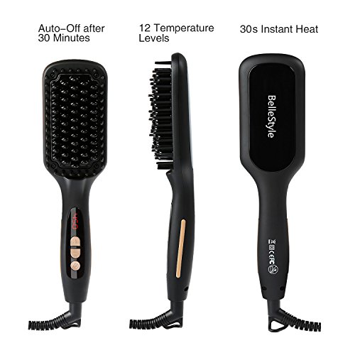 BELLESTYLE Straightening Brush Anti-static technology reduces the amount of negatively charged particles during styling. Diminish frizz and fly away while boosting style control.
