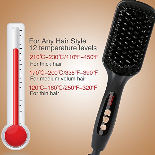 Release rich negative ions when straightening and shining curly or frizzy hair, eliminating frizz and adds shine. Anti-static, anti-scald and anti-hair broken, repair the hair quality of harm. Make your hair not only straight but also smoother and healthier. 3 in 1 detangling comb, hair brush, hair straightener