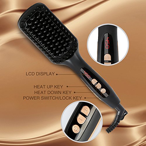 2 in 1 Ionic Hair Straightener Brush: Release rich negative ions when straightening and shining curly or frizzy hair, eliminating frizz and adds shine. Anti-static, anti-scald and anti-hair broken, repair the hair quality of harm. Make your hair not only straight but also smoother and healthier. 3 in 1 detangling comb, hair brush, hair straightener
