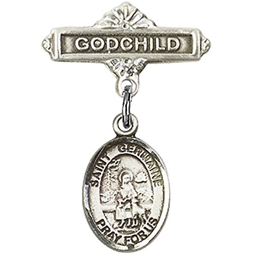 -. Title : Sterling Silver Baby Badge with St. Germaine Cousin Charm and Godchild Badge Pin 1 X 5/8 inches