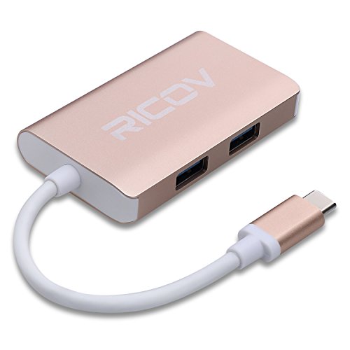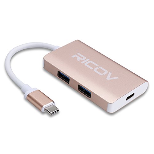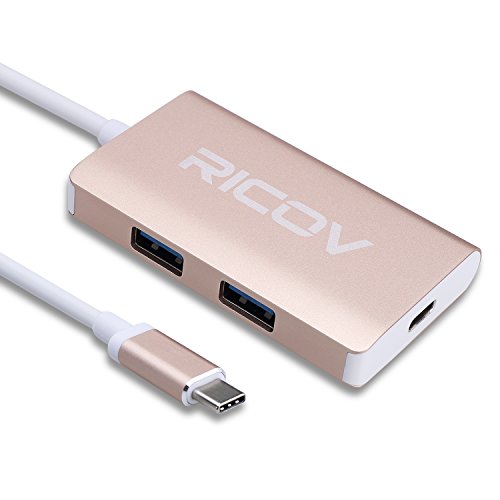 USB C Hub,RICOV USB3.1/Type C(USB-C & Thunderbolt 3 Port Compatible) to 2-Port USB3.0 + Type C Adapter Cable - Gold