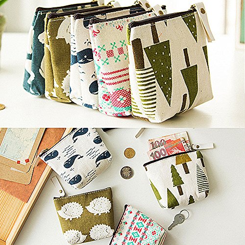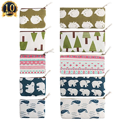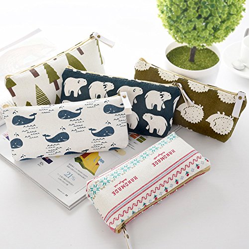 SUBANG 10 Packs Pencil Case Forest And Animal Theme Linen New Style Pencil Case Box Makeup Bag, 5 Styles