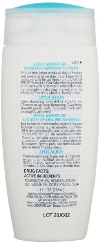 -. Title : L'Oreal Paris Ideal Moisture Day Lotion SPF 25, Sensitive Skin, 4.0 Fluid Ounce