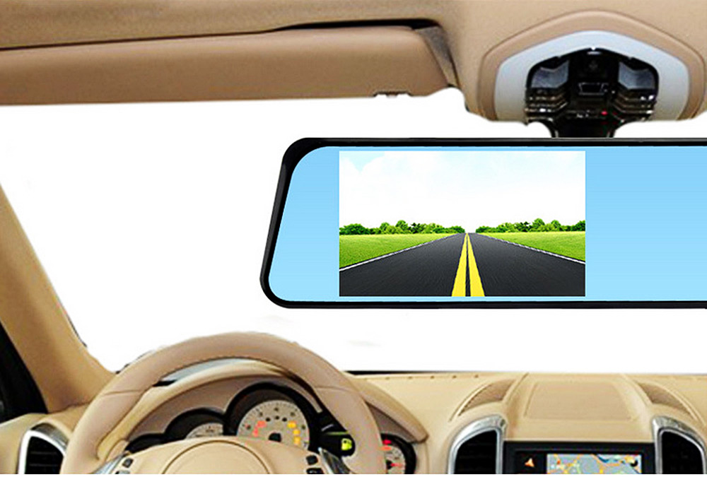 1080P Full HD 4.3 inch G-sensor Dual Lens Rearview Camera Car DVR Dash Cam Recorder Video Rear View Mirror with Night Vision Motion Detection