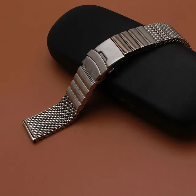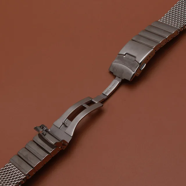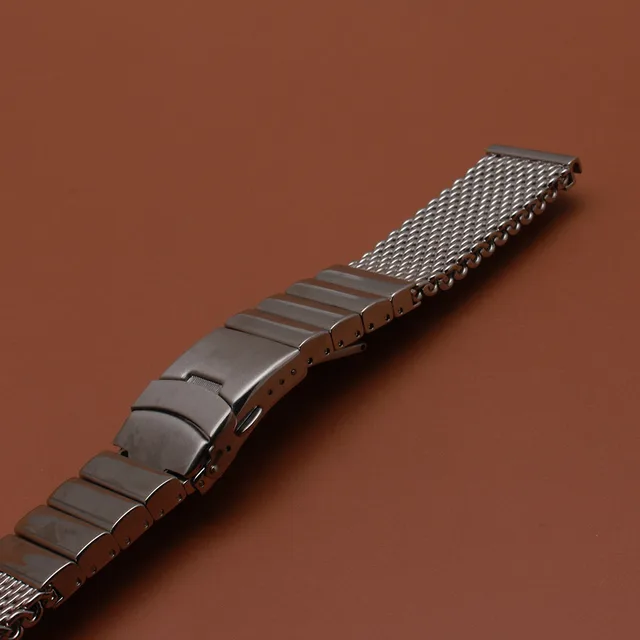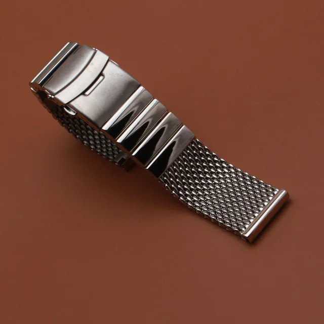 | [해외] 새로운 22 미리메터 시계 밴드 스트랩 멋진 shark 메쉬 스테인레스 스틸 링크 금속 손목 실버 버튼 남성 여성 손목 시계 교체 |