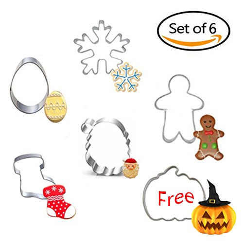 Smilyard Cookie Cutter 5 Piece Stainless Steel Christmas Cookie Cutter Set Cake Decor Candy Biscuit Mold (with A FREE GIFTS of Pumpkin Cookie Cutter)