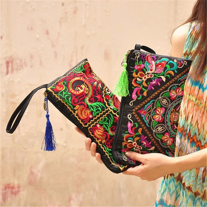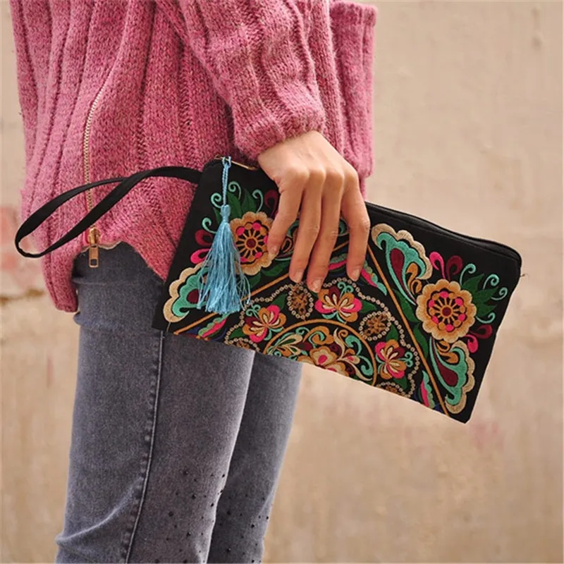 Type:National Retro Purse Embroidered Long Wallet Women Vintage Purse