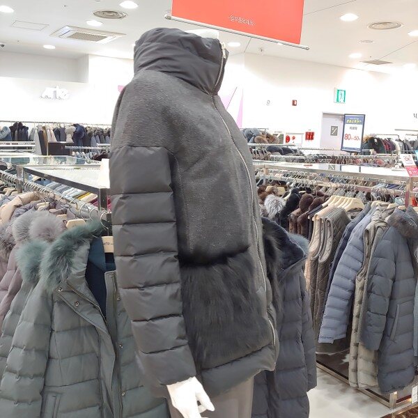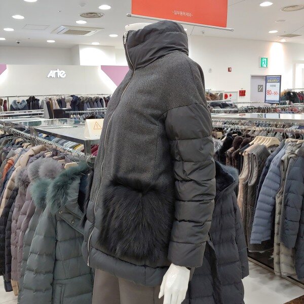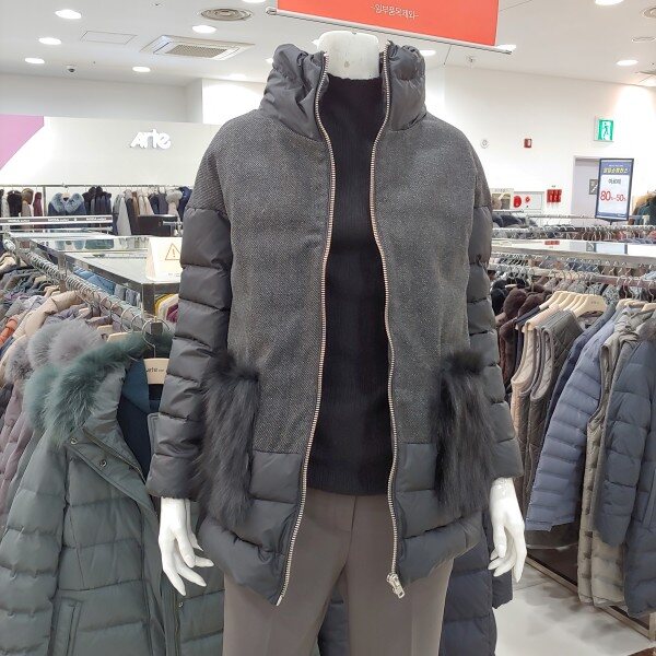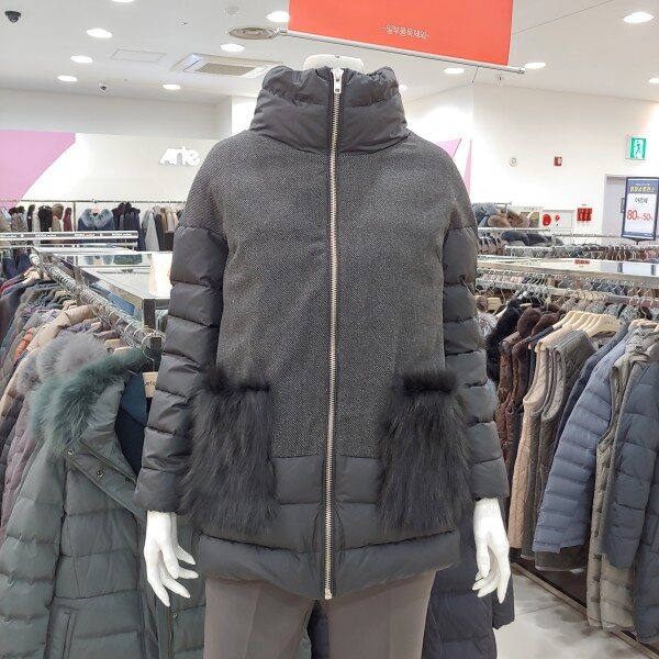 이월제품으로 가격이 너무나 착한 패딩.포켓에 폭스털로 포인트를 준 멋스러운 구스 패딩.