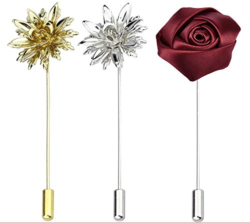 (123Arts)/Accessories/Hair Accessories/DIRECT FROM USA/3 PCS Men's Lapel Flower Alloy Brooch Pin Boutonniere,Wedding Party For Suit