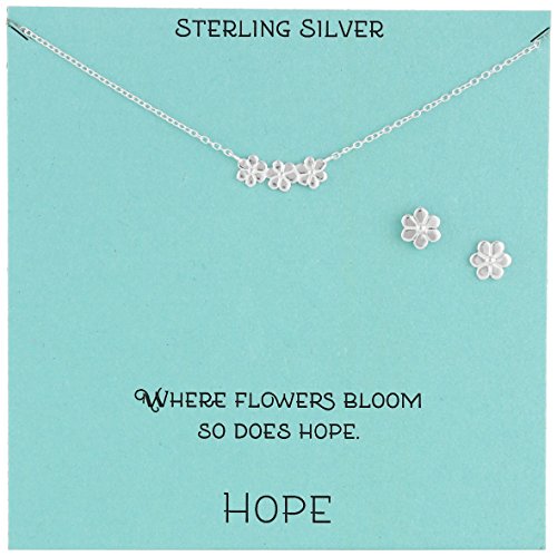 -. Title : Sterling Silver Flower Necklace and Earrings Jewelry Set, 18"