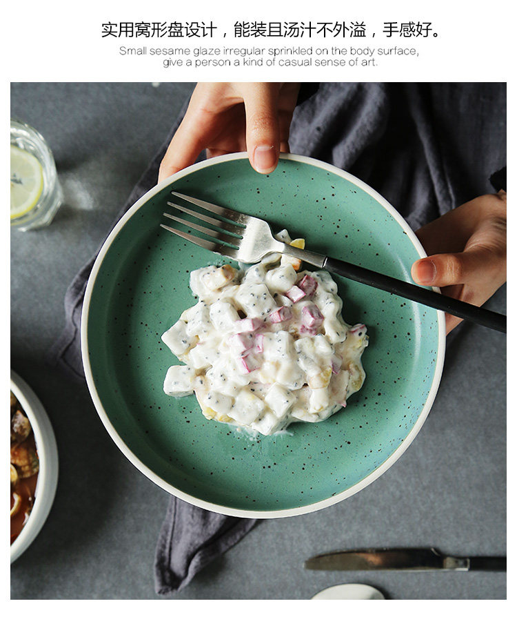 创意家用菜盘子个性双耳盘西餐汤盘深窝盘早餐点心沙拉盘陶瓷餐具