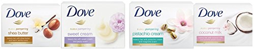 Dove Purely Pampering Sweet Cream Beauty Bar with 1/4 moisturizing cream is infused with the warm, enticing fragrance of sweet cream and peony that delights your senses as it washes away the day. Wondering how to get smooth skin? With the right products, getting the glowing, radiant skin that we all want can start right at the beginning of your routine, in the shower - and you can treat yourself a little, too. We've created Dove Purely Pampering Sweet Cream with Peony Beauty Bar to help you keep your skin soft and add a warm fragrance to your morning. This Dove Beauty Bar combines our signature gentle cleansing and nourishment with the soft, feminine scent of sweet cream with peony to delight your senses. Our unique formula, enriched with 1/4 moisturizing cream, replenishes nutrients that are lost during cleansing and helps to maintain your skin's natural moisture. And the warm fragrance of sweet cream with peony adds a touch of indulgence to your cleansing routine, leaving you and your skin feeling renewed. Bliss. It's not a soap. It's a beauty bar. Durable Product.