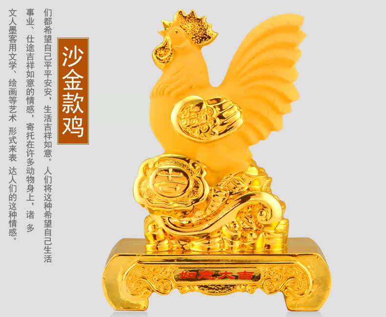 招财如意吉祥金鸡摆件树脂工艺品生肖公鸡酒柜客厅乔迁开业礼品