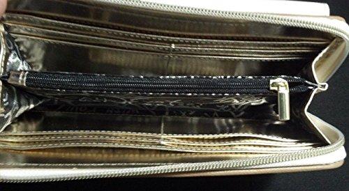 This Betsey Johnson Wallet has a zipper and magnetic snap. The wallet also contains various pockets inside as well as a wallet pouch where you can store small items or coins.Feature