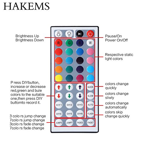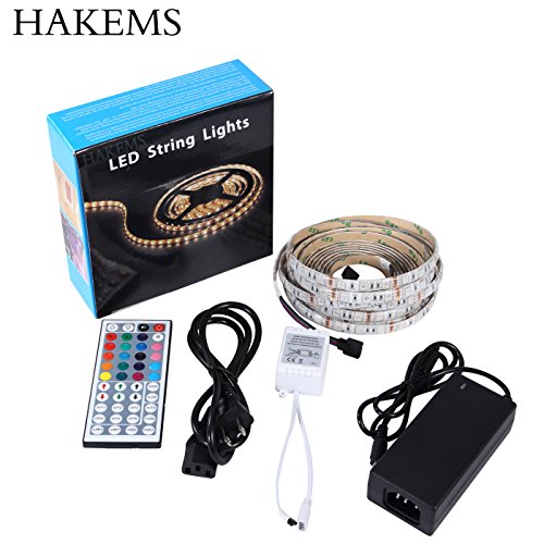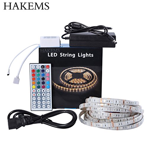 Hakems Led Strip Lights Kit, 5M Waterproof 5050 SMD RGB LED 44 Key Remote Controller Flexible Strip Colour Changing Lights 300 leds strip Kit For Lightning or Decoration?