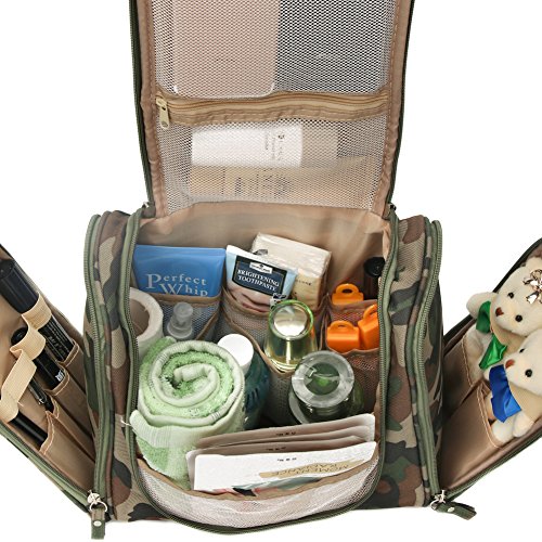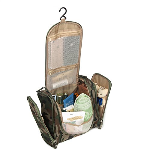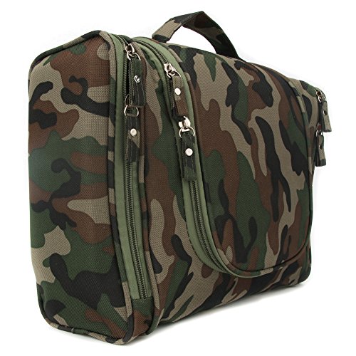 Hanging Toiletry Bag Camo - Premium Large Travel Essentials Organizer - Durable Metal Hook Zipper - Perfect for Men, Women, Accessories, Cosmetics, Personal Items, Shampoo, Body Wash