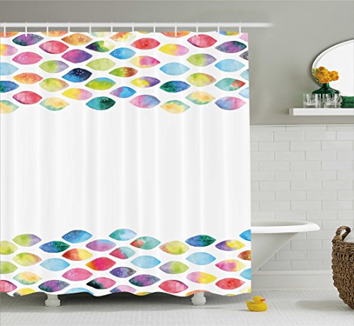 Abstract Shower Curtain by Ambesonne, Watercolor Horizontal Oval Leaf Shaped Forms Soft Pastel Tones Classic Artwork, Fabric Bathroom Decor Set with Hooks, 84 Inches Extra Long, Multicolor
