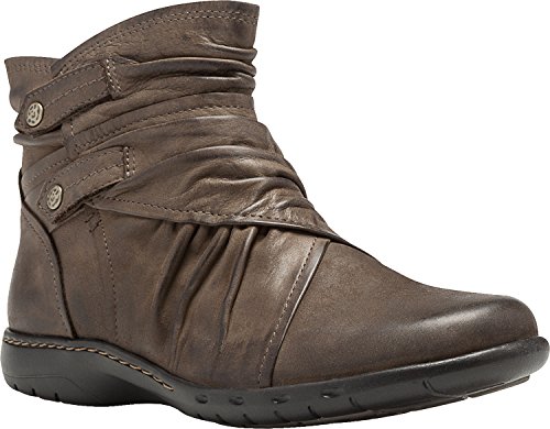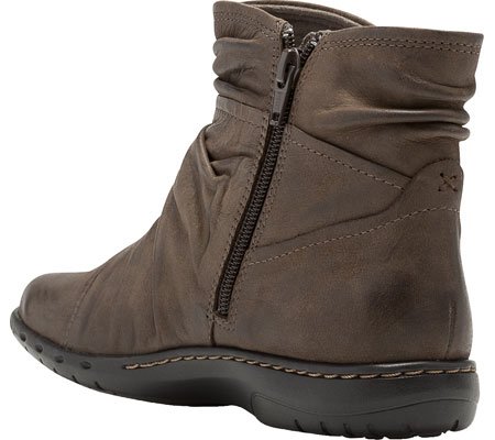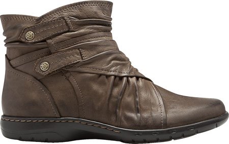 Perky and playful, the Cobb Hill Pandora boot is a surefire winner for cool-weather adventures. This women's ankle bootie is made from full grain leather with a wraparound look and ruching details; balanced by two snap-closure straps on the outside of the boot shaft, an inside zipper enables easy entry. The removable, cushioning EVA insole is designed to draw moisture away from the foot as it lends support, maintaining a cool and healthy interior. The Cobb Hill Pandora flat-heeled ankle bootie is finished with a lightweight, shock-absorbing EVA bottom that has rubber heel and forefoot inserts for enhanced wear and traction.Feature