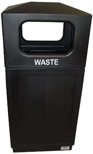 - Feature : Ergonomic design / Covered top to protect from weather elements / 39 gallon waste capacity / Use indoors or outdoors / Optional hard bin liner and surface mounting kit available