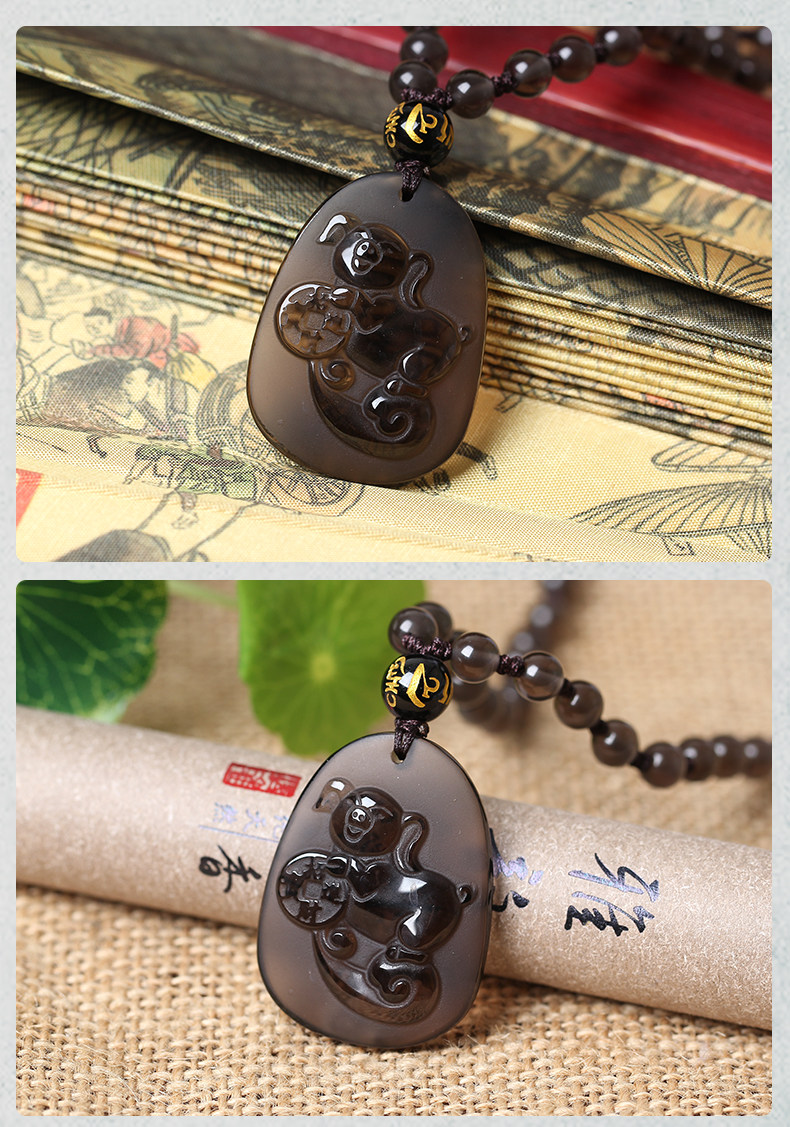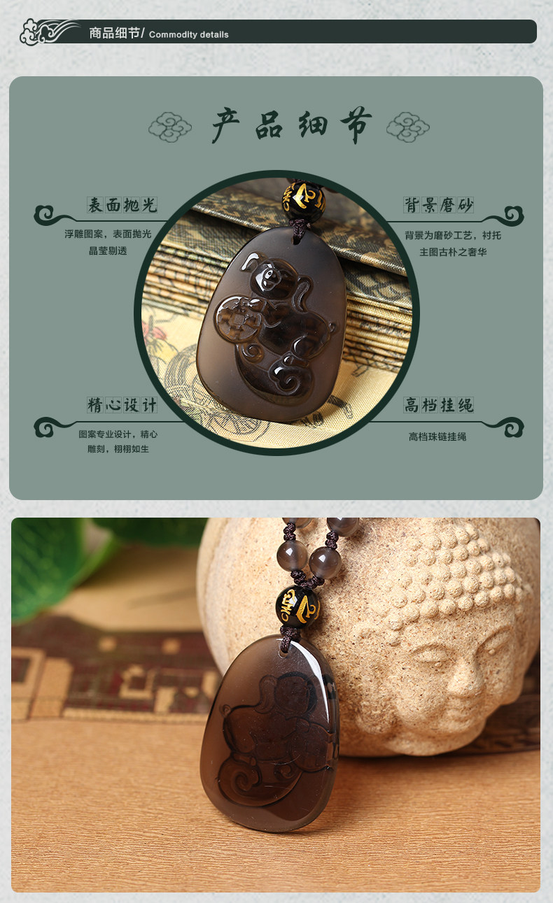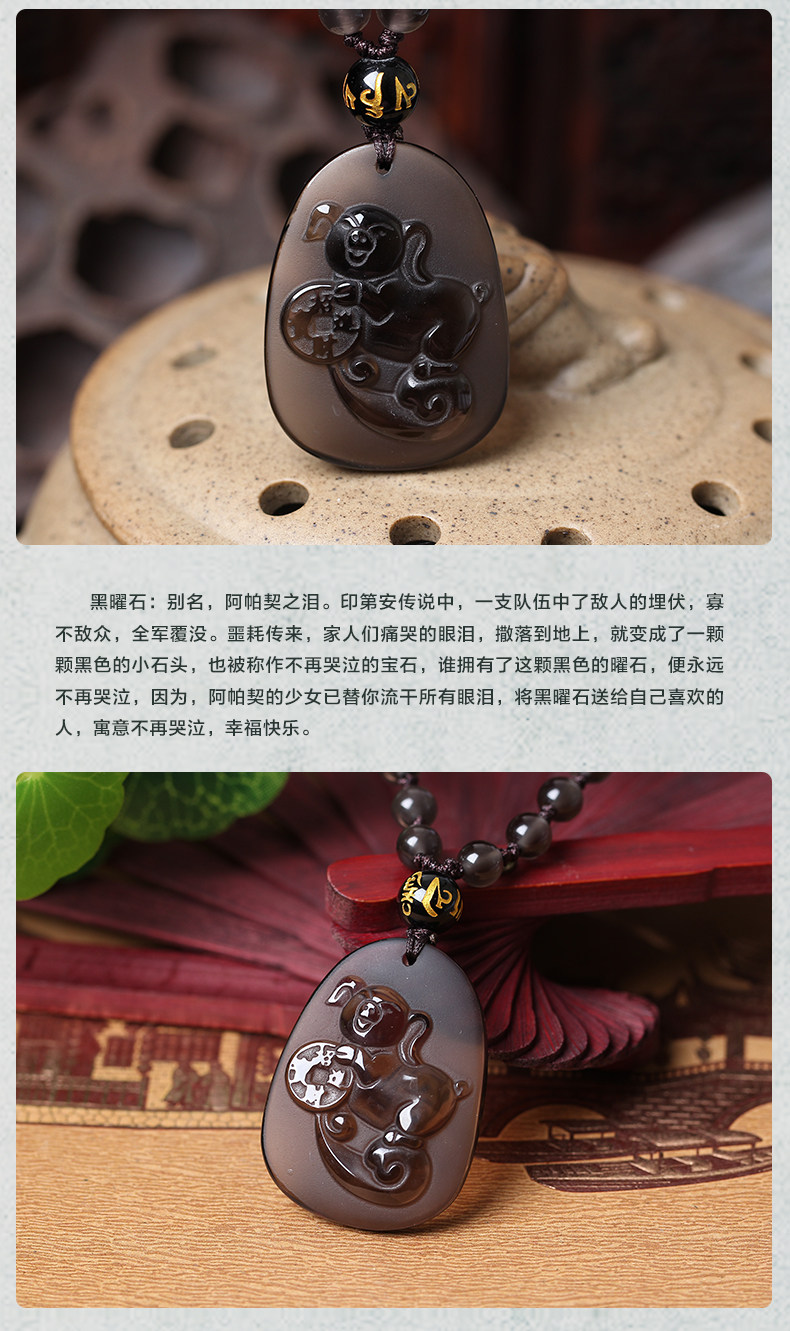 开光福猪旺运属兔开运吉祥物黑曜石项坠