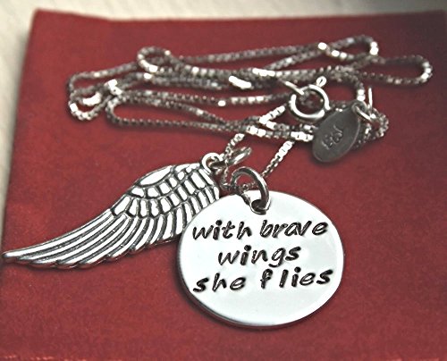 -. Title : With Brave Wings She Flies Sterling Silver Inspirational Necklace, Quote Jewelry, Handmade Hand Stamped Necklace
