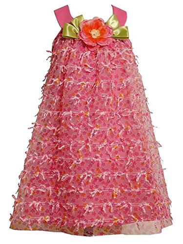 -. Title : Bonnie Jean Little Girls Toddler 2T-6X Pink Flutter Bow Floral Print Mesh Dress