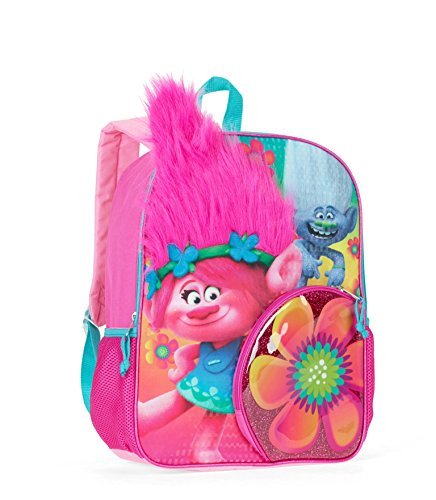 -. Feature : 16" Full Size Backpack / Front Trolls graphic with faux fur / 100% Polyester / Main compartment with zip closure, Front pocket with zip closure, side mesh pockets, adjustable padded shoulder straps, locker loop / Officially licensed product