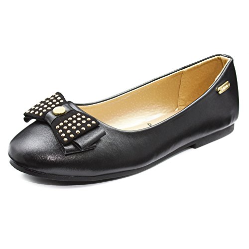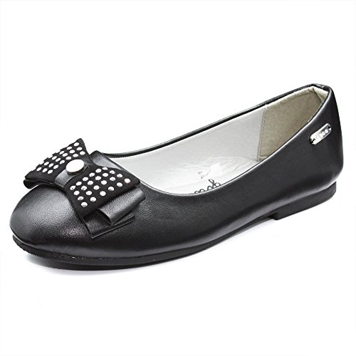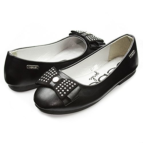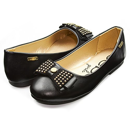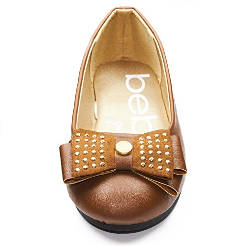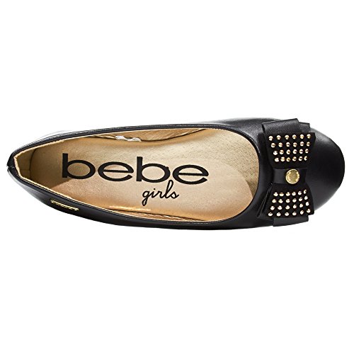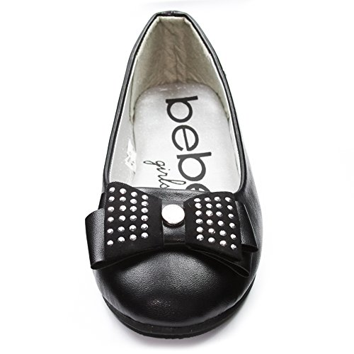 -. Feature : ENJOY SUPERB COMFORT: Featuring a round toe and foam cushioned foot bed, your kid will enjoy strolling while feeling comfortable all day! / FASHIONABLY GORGEOUS: Each ballet flat is constructed of smooth man-made leather finish with a dainty bow that's accented with silver studs, and a bebe logo on the side, for a pair of fashionable shoes that's sweet and adorable, just like her! / WALK WITH CONFIDENCE: These ergonomic ballet shoes are supported with a lightweight and flexible rubber sole for a confidence that your girl's feet are provided with enough support and comfort. Perfect for dance, school, and play! / VERSATILITY AT ITS FINEST: Whether it be for a casual or a formal event, these flats are up for anything! Pair it with a dress, shorts, or denim, and your girl's good to go! / EASY TO WEAR: Each ballet flat features a classic slip-on design so your little one can easily wear it by herself